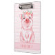 Um adorável porco aquoso com uma coroa floral sobre um fundo de listras cor-de-rosa. O texto diz: Olá! (Personalize facilmente o texto com apenas alguns cliques!)
