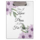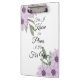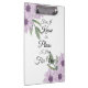 Área de transferência com flores roxas e "Porque eu sei os planos que tenho para você" escrita nela.