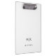 Este moderno design de área de transferência apresenta um simples fundo branco, com as suas iniciais em negrito texto preto para uma aparência simples e profissional.