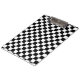 Arte digital abstrata de quadrados preto e branco em uma formação checkered.