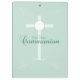 Esta carta verde suave é boa para felicitar o jovem rapaz ou a rapariga pela sua Primeira Comunhão Sagrada.