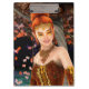 Renderização digital em 3D de uma bela princesa do outono em um fundo de jardim de fantasia