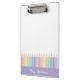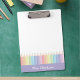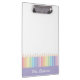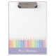 Ideal para qualquer professor com talento para criatividade e amor pela organização, esta moderna e personalizada prancheta de professores de arco-íris é imperdoável em todas as salas de aula! Abraçando belamente o espectro do arco-íris numa paleta pastel macio com uma borda púrpura pastel, este produto apresenta uma exibição vibrante de lápis coloridos, o fazer faz do dia a dia um prazer. A cereja no topo é a única opção de personalização - você pode ter o nome do professor nela! Isso faz de cada área de transferência um dom extraordinário que certamente será apreciado e usado regularmente. Isto faz um presente perfeito para os professores. Use os detalhes da seção "Personalizar este modelo" para adicionar suas informações. Design original do Ana Garza/Kardz Studio. Se tiver alguma pergunta, por favor contacte-me através do bate-papo Zazzle.