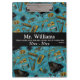 Nunca mais a sua prancheta se afasta - Personalizada de volta à escola para professores de música. Voltar à escola pode ser difícil, ter instrumentos musicais lindos em uma sala de aula única facilita. Instrumentos clássicos de percussão, corda e latão em fundo azul de lagoa.