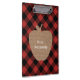 Uma prancheta para os professores que caracterizam uma ilustração de uma maçã de serapilheira sobre um fundo vermelho e preto da xadrez da herança (búfalo). Personalize o nome.