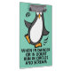 Quando no perigo ou na dúvida, no funcionamento nos círculos e no gritar. - Este pinguim parvo tem algum conselho útil para quando você sente como freaking para fora e trabalha sempre! Gráfico bonito do pinguim com provérbio engraçado.