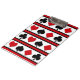 Conjunto de ícones de traje de cartão isolados em fundo listrado preto, vermelho e branco