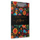 Área de transferência de receitas de 3 anéis modernos com um nome de script feminino laranja num fundo de padrão floral mexicano. Personalize com seu nome.