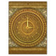 Um relógio barroco ornamentado de madeira embelezado com aves, flores e plantas em verde e rosa. O quadro tem um aspecto de folha de ouro queimado. O relógio está no centro da moldura, tem uma aparência de metal em latão e é muito detalhado e decorativo com números de ouro.
