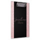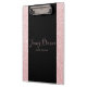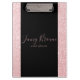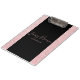 Fundo preto sólido com faixas de rosa dourado brilhante e fonte decorativa elegante, o verso é rosa dourado com suporte de informação pessoal a preto sólido