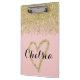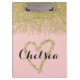 Desenhado com um coração brilhante na frente, sequências de ouro em cascata de cima para baixo para uma prancheta de quartzo de rosa. Rosa com nome personalizável. Binder e mousepad correspondentes disponíveis neste design para uma aparência coordenada.