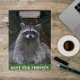 Mantenha seus formulários e documentos organizados no escritório com esta prancheta dupla e acrílica que apresenta a foto da vida selvagem de um guaxinim da floresta, junto com a mensagem "Salve nossas florestas".