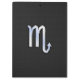 Um cromo prateado como Scorpio zodiac símbolo em um decor de impressão de textura fina de cobra de pele de carvão preto. Um design moderno urbano para uma ideia personalizada de presente de aniversário de excelente. Use o link "Perguntar a este Designer" para entrar em contato conosco com suas solicitações especiais de design ou para obter assistência com suas necessidades de personalização.