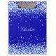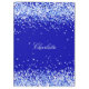 Um fundo azul real chic, decorado com confete azul claro. Personalize e adicione um nome escrito com um script estilo moderno, elegante e escrito à mão.