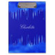 Um fundo azul-real chic, decorado com pingos de tinta, com aparência pingando. Personalize e adicione um nome escrito com um script estilo moderno, elegante e escrito à mão.