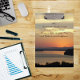 Mantenha seus formulários e papéis em ordem em casa ou no escritório com esta prancheta acrílica que mostra a foto de um pôr do sol dramático, laranja, junto com as palavras inspiradoras da oração da serenidade impressas na frente.