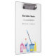 Um fundo branco, limpo, decorado com equipamento de limpeza a rosa, azul e amarelo. Personalize e adicione seu nome e texto.