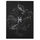 Um cromo de prata como o símbolo do zodíaco dos peixes em um mapa da constelação da astrologia de Hevelius do vintage cerca do fundo de 1690 impressões. Uma mistura de atrevido urbano moderno e de vintage projeta para uma grande ideia feita sob encomenda do presente.