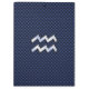 Um cromo prateado como o símbolo Aquarius Zodiac num fundo impressão de fibra de carbono azul marinho. Um design moderno urbano para uma ideia personalizada de presente de aniversário de excelente. Use o link "Perguntar a este Designer" para entrar em contato conosco com suas solicitações especiais de design ou para obter assistência com seu projeto de personalização.