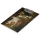 This design features a painting by the Victorian-era British artist Edward Frederick Brewtnall (1846–1902). It is a richly detailed Pre-Raphaelite-influenced painting that illustrates a key moment from the classic fairy tale: the princess lying in her enchanted sleep, surrounded by layers of wild roses that have grown over the palace during her hundred-year slumber. The roses add both beauty and danger to the scene: delicate blossoms contrast with the sharp thorns, symbolizing the enchantment’s mixture of protection and peril. Their encroachment also heightens the sense of isolation, as if the outside world has vanished behind a barrier of living bramble. Sleeping Beauty lies gracefully on an ornate bed draped in rich fabrics, her body relaxed and her expression serene. The soft lighting creates a warm glow around her figure, giving her an almost ethereal presence. Brewtnall emphasizes her stillness and her perfect calmness, suggesting both innocence and a dream world untouched by the passing of time. Brewtnall’s meticulous attention to detail, typical of artists influenced by the Pre-Raphaelite movement, enriches the scene. Every fold of fabric, every rose petal, and every carved surface is rendered with care, drawing viewers into a world that feels tangible yet dreamlike. The painter's palette (warm browns, deep greens, soft pinks, and glowing golds) reinforces the atmosphere of magical stillness. The long-awaited prince can also be seen as he finally reaches the enchanted princess. The prince, dressed in rich medieval garments, ascends a small flight of steps leading to her bed. Brewtnall paints him with a mixture of awe, caution and earnest devotion. He gazes directly at her face, transfixed by her beauty and by the profound importance of this moment. His body leans forward slightly, hesitant but resolute, capturing the tension of a man on the cusp of breaking an ancient spell. He is not yet touching her; the scene is suspended in that breath of time before action, adding emotional and narrative intensity. The Prince holds a spear in one of his hands, suggesting that he has had to fight to reach Sleeping Beauty. What makes Brewtnall’s version especially compelling is that he does not rush toward the dramatic climax. Instead of showing the awakening kiss, he invites the viewer into the contemplative moment just before it occurs. He is both intruder and saviour, the first living soul to enter the room in a hundred years, standing before a woman whose life is suspended like a musical note held indefinitely. The roses that surround Sleeping Beauty are not simply background decoration. They behave almost like characters. Their vines creep over bedposts, crawl across steps, and clutch at the prince’s approach with curling tendrils. The thorned vines form natural barriers, as though the castle has tried for decades to shield her, preserve her or discourage the unworthy. They frame her bed like an organic cathedral altar, and the prince climbs toward it as if moving through a sacred ritual space. The original artwork depicting Sleeping Beauty was painted by Edward Brewtnall sometime before 1902.