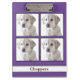 Esta prancheta personalizada deixa-o mostrar fora seu cão ao tomar notas em todos seus eventos. Você pode escolher toda a cor do fundo (mostrada aqui no roxo) que você gosta para a parte dianteira e a parte traseira. Inteiramente customizável com seus próprios fotos e texto. Mude o texto para refletir qualquer coisa que você gosta, das datas importantes da mostra às realizações ou aos prêmios notáveis recebidas.