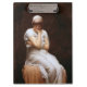 Esta design apresenta uma pintura do artista vitoriano britânico Frederic Leighton (1830-1896). Ela representa uma linda mulher sentada sozinha. Ela está vestindo um vestido de branco que flui muito, e ela parece ser contemplativa e pensativa. A mulher está claramente sentindo tristeza, tristeza e solitário. Ela está sozinha sem ninguém para apoiá-la. Sua cabeça está baixa e sua mão está descendo em seu rosto, enquanto ela luta para lidar com sua depressão. A mulher parece estar sentada em uma caverna deserta. A obra de arte original foi pintada por Frederic Leighton em 1890.