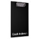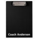 This clipboard is black. You can customize the clipboard with a coach's name or other text. The text is white.