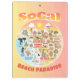 Um espetacular desenho do sul da Califórnia - mostrando Los Angeles, Orange County, San Diego. Esta cena brilhante e encantadora tem tudo - uma surfista pendura dez enquanto uma peça de casal na água, uma baleia assassina salta, um casal de praia muscular ambos flex para impressionar, animais de zoológico esperam por turistas, um t-rex lança um desafio, tudo sob o brilhante sol da Califórnia brilhando acima de tudo.