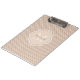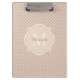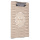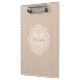 Adicione uma impressão moderna sofisticada a seu estilo do escritório com esta prancheta tan e branca na moda do teste padrão do quatrefoil com um monograma moldado elegante. Personalize este design à moda adicionando sua inicial conhecida e monogrammed.