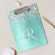 Personalize facilmente esta moda design de prancheta de chic com brilho bonito prateado em um fundo metálico escovado teal.
