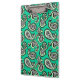 Bold paisley designs in black, green, lime, and white swirl across a vibrant green background. The intricate patterns create a lively, decorative effect.