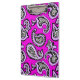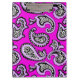 Bright pink paisley patterns with intricate black and white details create a vibrant and intricate design. The swirling motifs are outlined with dots and curls, set against a bold pink background.