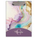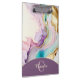 Uma design de tinta líquida elegante feminina em rosa, roxo, turquesa e ouro. Personalizado com monograma e nome.