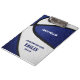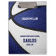 Esta prancheta de basquete para o treinador de basquetebol feminino ou masculino apresenta a imagem de uma basquete abstratamente sobredimensionada que tem painéis coloridos em azul e branco alternados, sobre os quais você pode personalizar o nome do treinador mais o nome da escola e mascote e ano/estação escolar - por katz_d_zynes