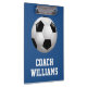 Um presente para o treinador de futebol ou entusiasta do futebol, este design está pronto para personalizar com o nome do seu treinador, nome do time ou outro texto. Você também pode alterar a cor azul do plano de fundo para a cor de sua escolha usando a opção "personalizá-la".