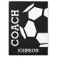 Treinador Personalizado em Tendy Modern Na moda Black and White Clipboard. Personalize esta área de transferência com o nome do seu treinador de futebol favorito, tanto na frente como no verso. Design em ambos os lados, o texto está em branco e é fácil de ler em um fundo preto. Uma bola de futebol geométrica dá uma sensação moderna a esta prancheta de tendências. Um presente prático e personalizado para um treinador de futebol escolar.
