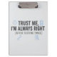 Pranchetas Trust Me I’m Always Right Funny Quality Engineer