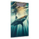 Pranchetas Tubarão no mar azul profundo e luz solar