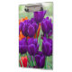Pranchetas Tulipas roxas escuras num dia ensolarado no jardim