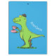 Nosso engraçado dinossauro de desenho animado verde é um "rex do chá".