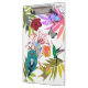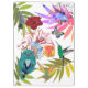 Aves- beija-flor, coruja, água Lilly, hibisco e uma pena - Jardim do Céu. Cor de fundo personalizada. É fácil adicionar texto se quiser.