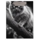 Um gato ameaçador com olhos brilhantes, dentes afiados e garras grandes é capturado em um cenário escuro e estranho. Suas cerdas de pele à medida que deixa um "miau" arrepiante, incorporando ferocidade e mística. Sombras e uma atmosfera assombrosa aumentam sua presença aterradora.