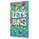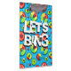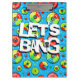 Bang de vamos verde, azul e vermelho, área de transferência de trocadilho de golfe de disco. Legal resmungão texto com fundo dourado em disco e um cesto de golfe em disco dentro no texto.