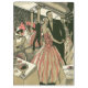 Ilustração vintage, amor e design de romance art deco apresentando um casal recém-casado vestido em trajes formais dançando em sua recepção de casamento; A linda noiva está em um vestido elegante de noite com delicadas flores florais cor-de-rosa e o noivo bonito está em um terno de smoking.