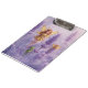 Among blooming lavender fields, three magical beings gather — a golden-winged fairy, a playful sprite, and a leafy companion.