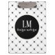 This elegant clipboard features a refined white and black bow monogram designed for a polished, professional look. Clean typography and a balanced neutral palette create a quiet luxury aesthetic suited for modern offices, home workspaces, and thoughtful gifting. Crafted to elevate everyday organization, it blends function with timeless style, making it ideal for business professionals, creatives, and anyone who values understated design and beautiful essentials.