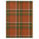 Padrão de tartã em tecido cruzado com uma paleta de cores quentes e rústicas. Uma base laranja queimada dominante é sobreposta por faixas profundas de verde floresta e acentuada por listras finas brancas e amarelo-dourado, criando uma estética clássica inspirada em tecidos tradicionais e tons outonais.