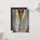 O esplendor de textura de fundo de cetim prateado adicionado com um ouro com um smoking faz com que seja utilizada uma placa de solteiro do excelente
