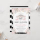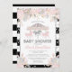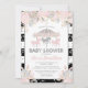 Rosa lindos, cinza e convite temático do chá de fraldas do carrossel da prata.