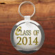 Elegante, legal e elegante, "Classe de 2014", cadeia de teclas bonitinha de graduação. "Classe de 2014" em um design gráfico de texto dourado em uma borda prateada (impressa, não prateada real) em 3d branca. Lembre-se do dia especial com esta corrente de chave de graduação de classe personalizada. Um olhar rico, mas barato! Excelente para toda a turma de graduação!
